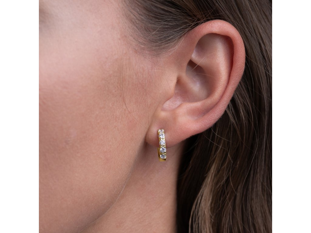 Kroužky mají velikost padnoucí takřka na každé ucho a jsou velmi univerzálně využitelné. Mají šikovné a praktické zapínání, kterým o nic nezachytnete. Kameny jsou precizně zafasovány a maximální přístup světla jim dává nádherný třpyt. Naprosto nadčasové.