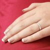 Krásný, spíše jemný prstýnek s velmi zajímavým usazením kamene. Díky dostatečnému přístupu světla má i malý briliant v tomto modelu krásný třpyt. Vypadá lépe v menších velikostech.