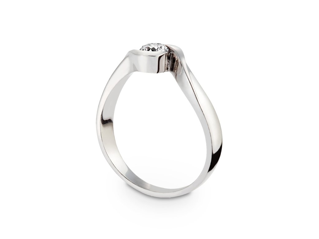 Prstýnek s příjemnými, čistými křivkami a výraznějším kamenem, bezpečně a prakticky zasazeným tak, aby nikde nezachytl.
