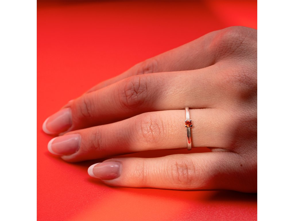Krásný, jemný prstýnek, který se nám opravdu povedl. S přírodním červeným safírem. Čtyři krapničky kámen bezpečně drží a přístup světla umožňuje kameni dostatečně vyniknout. Prstýnek je vhodný pro drobnější ruku a určitě se bude příjemně nosit i slečnám a dámám, které na prstýnky nejsou zvyklé. Za úvahu stojí také model 270.99 – stejný model, jen s 6 drobnými diamanty navíc. Nebojte se špetky originality, barevné pravé kameny jsou krásné a zásnubní prstýnek nemusí být jen s čirým kamenem